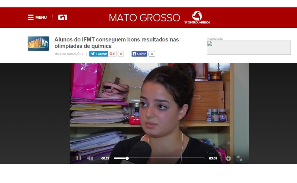 O programa Bom Dia Mato Grosso da TV Centro América (Globo) divulgou nessa quinta-feira, dia 26 de novembro, uma reportagem sobre os alunos do IFMT terem conseguido bons resultados nas 10º Olimpíada Mato-grossense de Química. O Campus Rondonópolis conquistou 12 medalhas, tendo em destaque, o primeiro lugar com a aluna do curso técnico integrado em Química, Ana Clara Camargo. Os estudantes do IFMT- Campus Rondonópolis receberão o prêmio no dia 4 de dezembro na UFMT e quatro deles foram classificados para o Campeonato Brasileiro de Química.