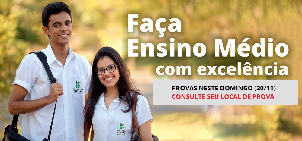 Serão aplicadas neste domingo (20/11) as provas do Exame de Seleção 2017/1 para cursos técnicos integrados ao ensino médio ofertados pelo IFMT em seus campi, campi avançados em centros de referência, localizados em 20 municípios do Estado. Estão sendo ofertadas 2810 vagas por este Edital 69/2016. os candidatos aprovados ingressarão na instituição no primeiro semestre de 2017.