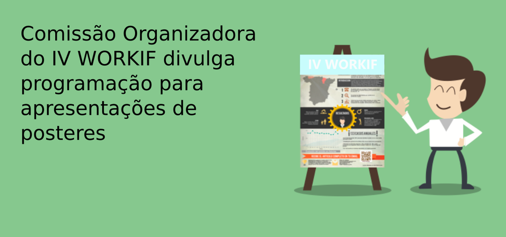 A Comissão Organizadora do IV WORKIF - Workshop de Ensino, Pesquisa, Extensão e Inovação do IFMT divulgou nesta segunda-feira (01/08), a relação de trabalhos aprovados para apresentação em pôsteres e a respectiva programação, contendo datas e horários estabelecidos.