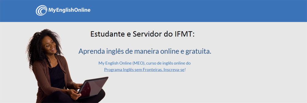O Instituto Federal de Mato Grosso (IFMT), por meio da Diretoria Sistêmica de Relações Internacionais (DSRI) informa que a instituição está credenciada para que seus estudantes e servidores possam se inscrever no My English Online – MEO, o curso de inglês online e gratuito do Programa Inglês sem Fronteiras. A oferta deste curso é de iniciativa do Ministério da Educação (MEC) e da Coordenação de Aperfeiçoamento de Pessoal de Nível Superior (CAPES), destinado aos alunos de graduação e pós-graduação de instituições de ensino superior públicas e privadas brasileiras.