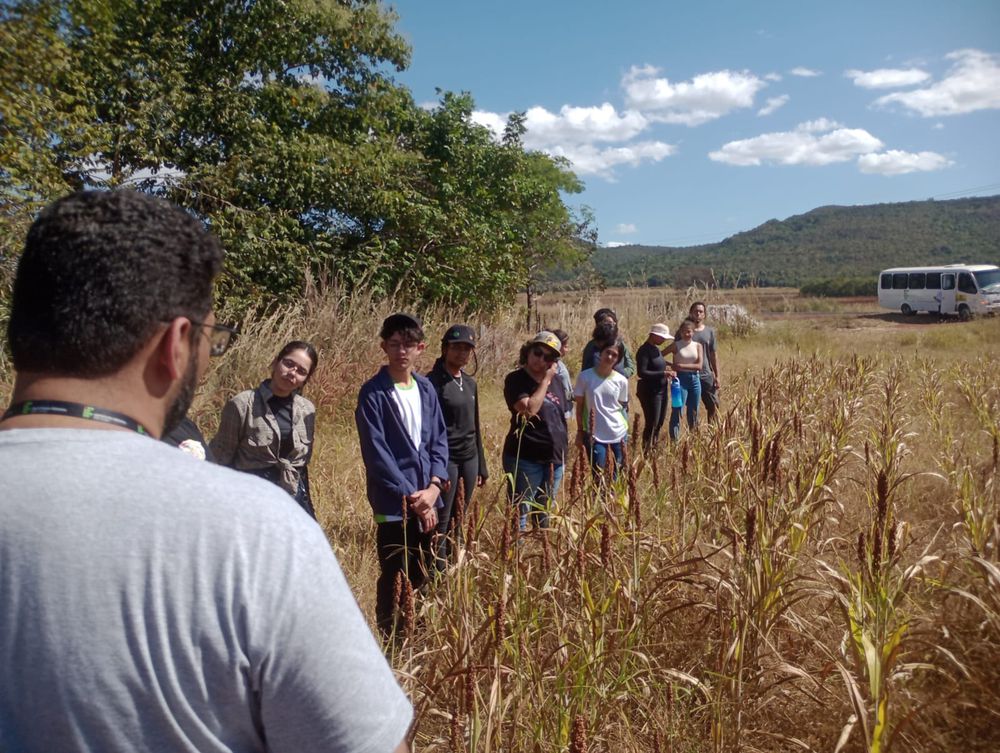 Um dos grandes benefícios dessa visita foi oferecer aos estudantes a oportunidade de conhecer ambientes e realidades distintas. Ao sair das salas de aula, esses jovens puderam vivenciar, na prática, diferentes atividades agrícolas, como o cultivo de segunda safra, incluindo milho, milheto e sorgo. Além disso, foi possível observar plantações de eucaliptos e ter uma visão das atividades pecuárias, tanto nas formas tradicionais e extensivas quanto nas inovadoras, que envolvem a integração entre a lavoura e a pecuária. Também puderam observar a vegetação do Cerrado já avançando em sua estação seca.