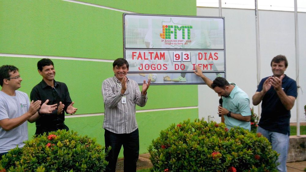 O IFMT - Campus Avançado de Tangará da Serra realizou na manhã desta quinta-feira (10/03), a cerimônia de lançamento da terceira edição dos JIFMT (Jogos do Instituto Federal de Mato Grosso), programado para acontecer no município tangaraense, no período de 13 a 17 de junho. O evento teve a participação do pró-reitor de extensão do IFMT, Levi Pires de Andrade, e do diretor-geral do Campus, Gilcélio Luis Peres, que apresentaram à comunidade escolar uma placa de contagem regressiva para os Jogos, iniciando a contagem em 93 dias para sua abertura. Participaram ainda do lançamento, o secretário de esportes do município, Ademir Anibale; o diretor de extensão do IFMT, Elson Santana; e o professor de educação física e responsável local pelos Jogos, Donizeti Ferreira Barbosa Júnior.